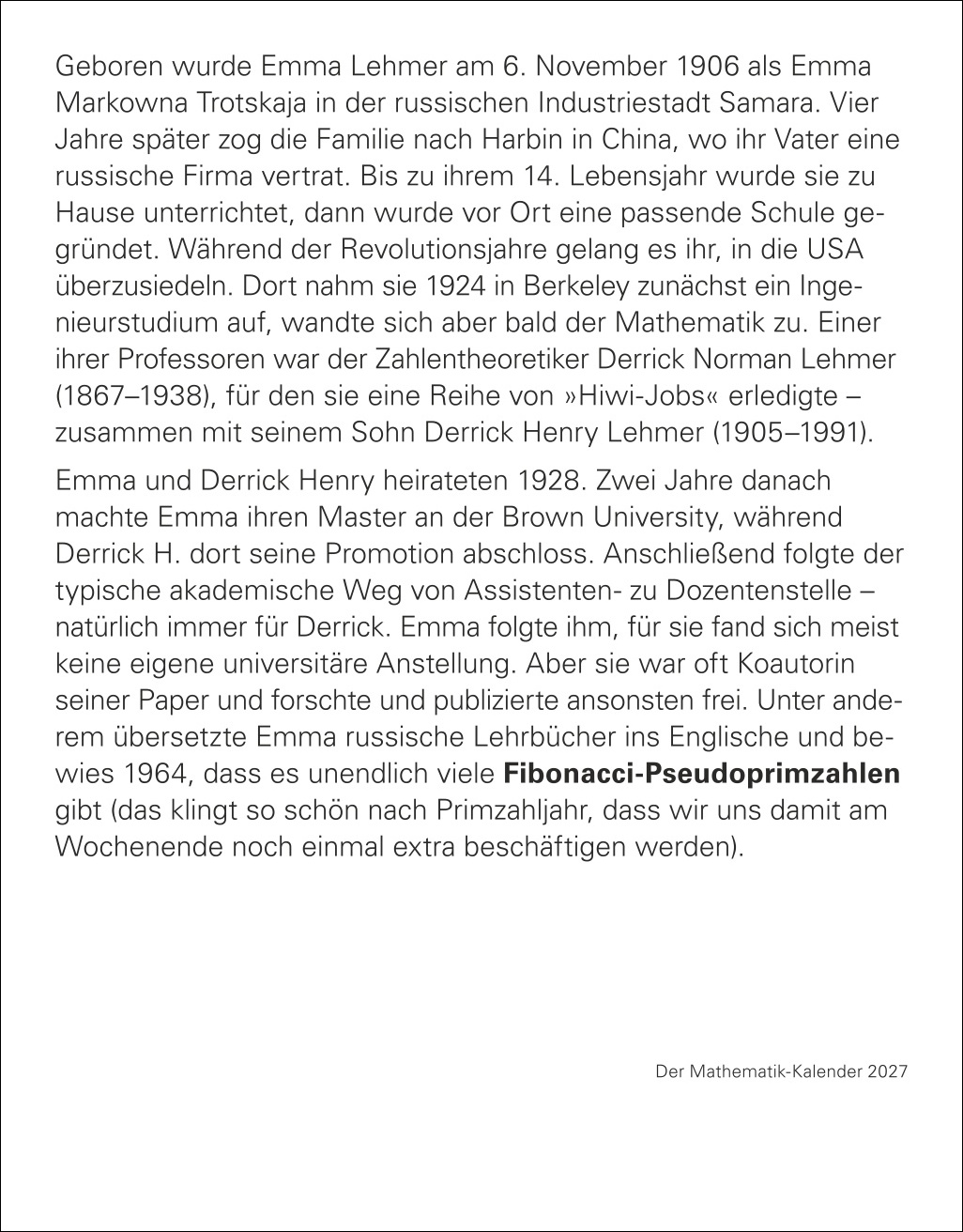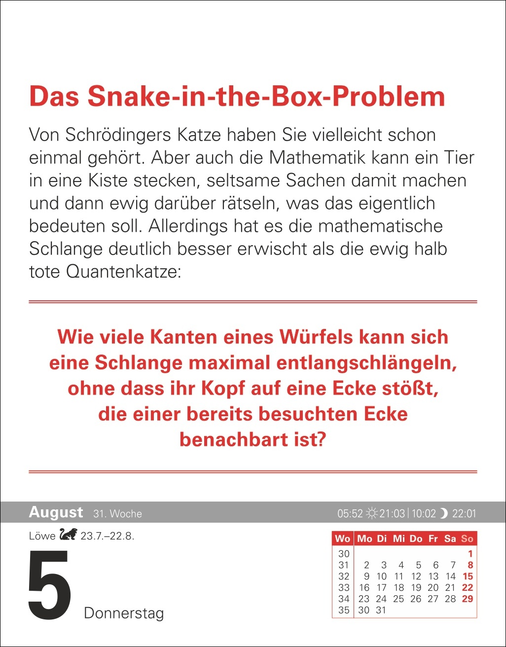 - Rechenrätsel treffen auf spannende Anekdoten und überraschende Fakten: Tischkalender mit Erstaunlichem aus der Geschichte der Mathematik