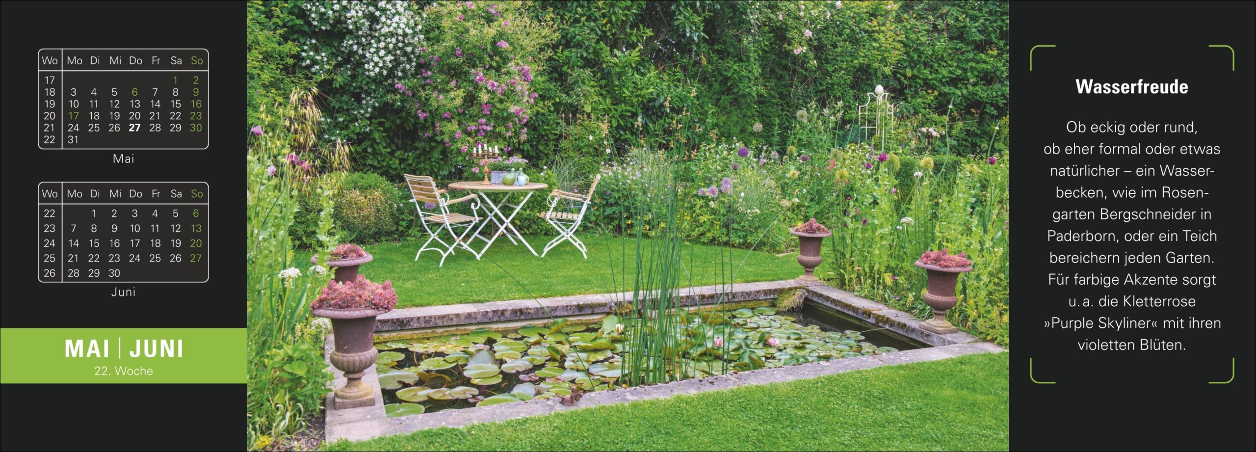- Fast wie Arbeiten im Freien: Wochenkalender im Querformat 29,9 x 11,10 cm mit Aufnahmen schöner Gärten sowie informativen Texten und Monatsübersicht