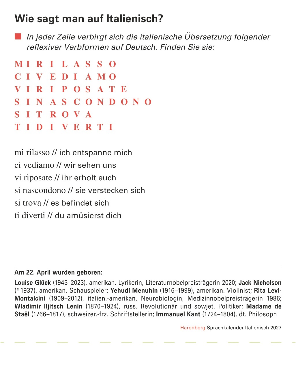 • Täglicher Lernerfolg statt anstrengendes Büffeln: Italienisch lernen mit unserem Tagesabreißkalender 2027