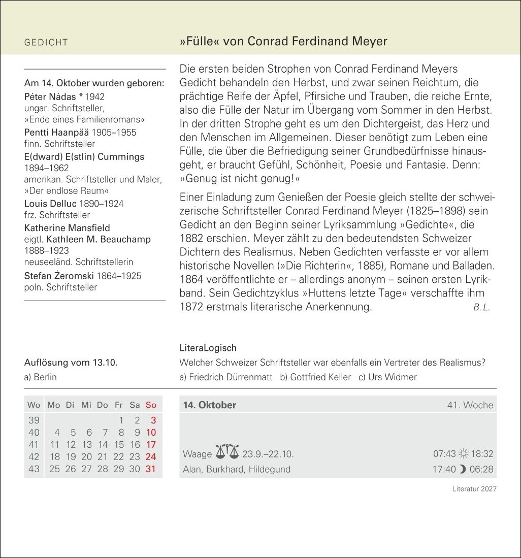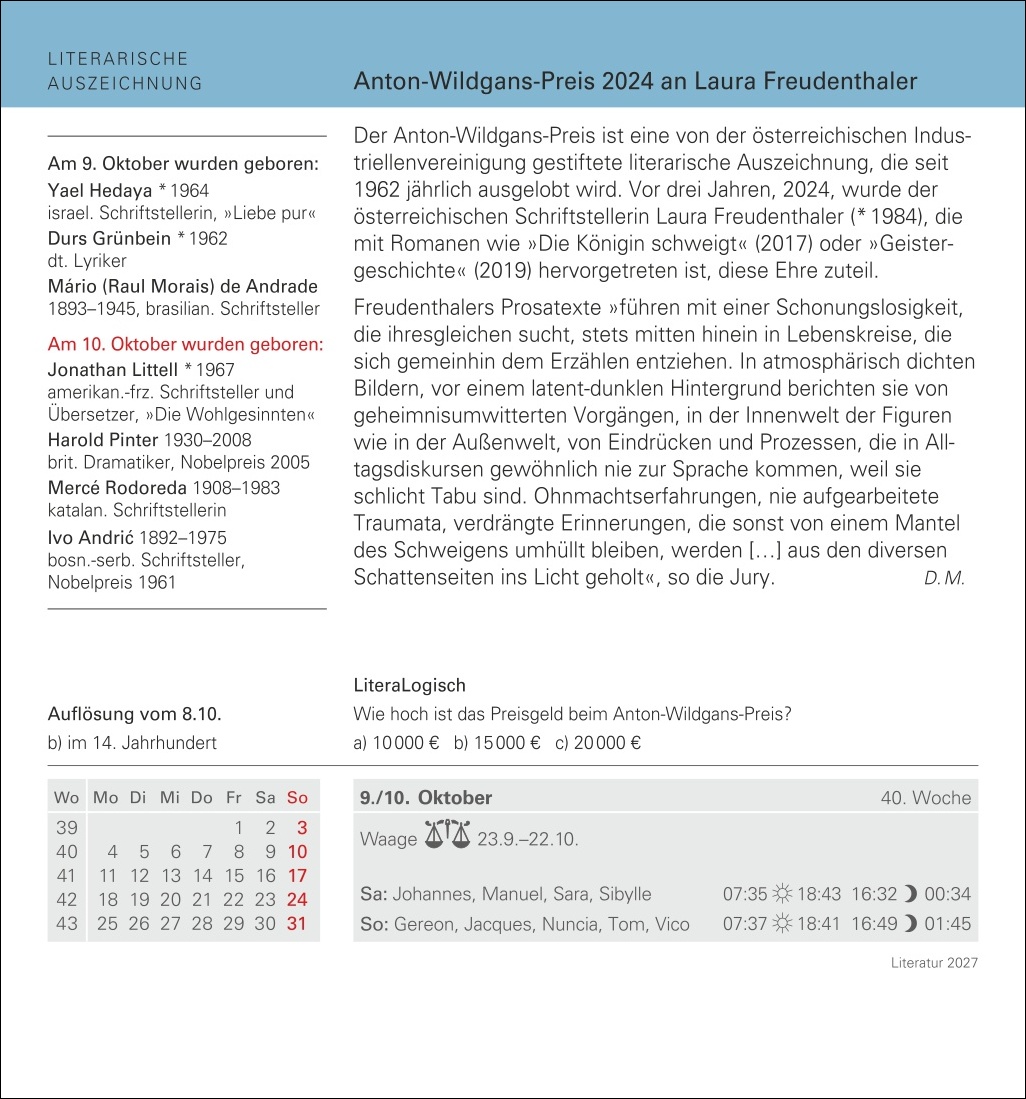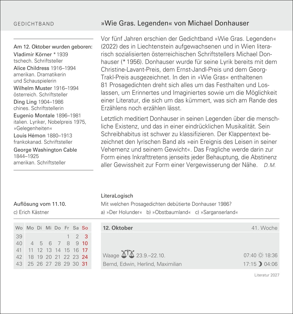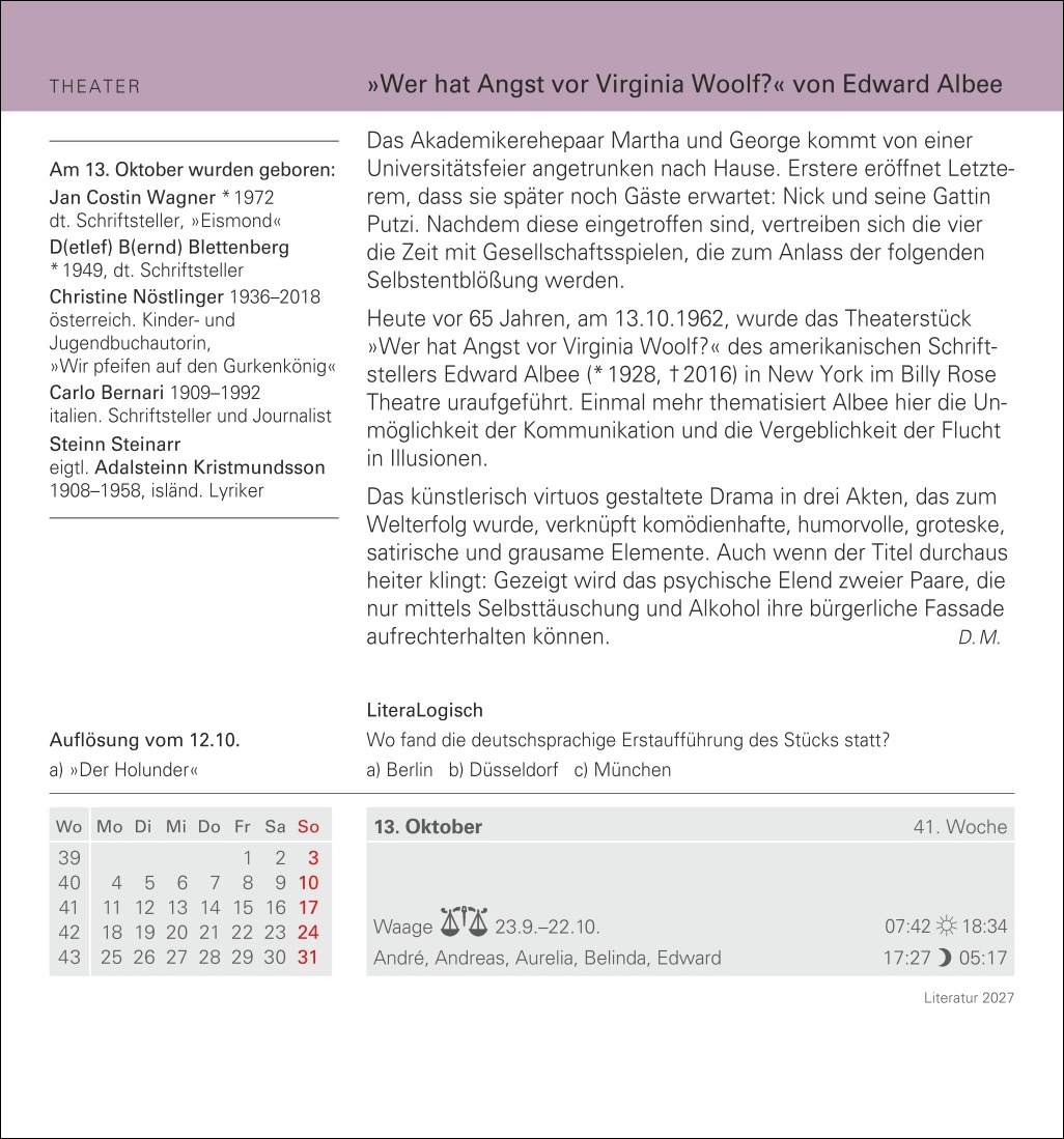 • Literarische Anregungen für jeden Tag, von Roman über Hörbuch bis zur Lyrik: Der Harenberg Literatur-Abreißkalender 2027
