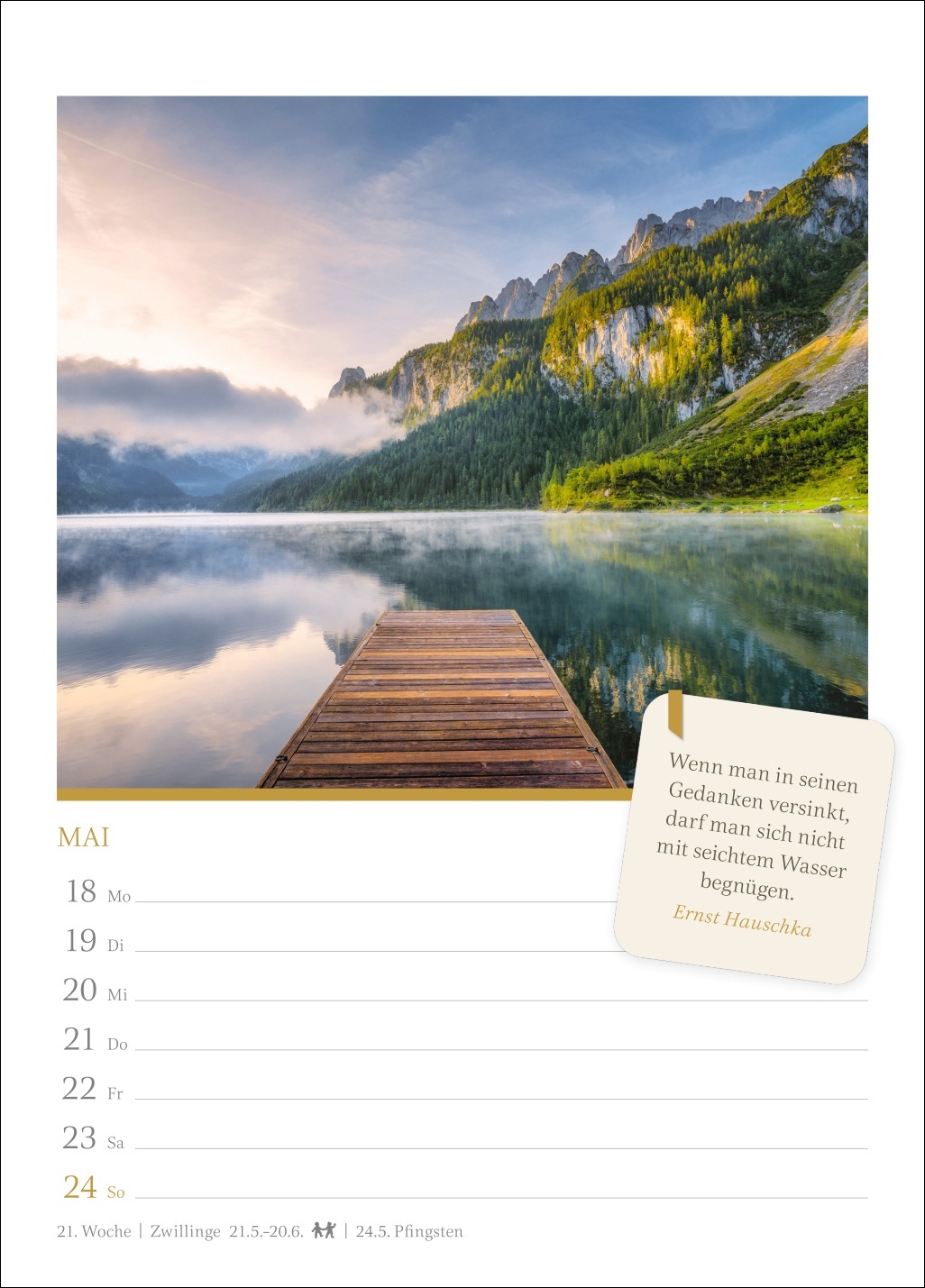- Ein bisschen Gelassenheit im Alltag und sich trotz vollen Terminkalenders Momente der Ruhe gönnen: Dazu regt dieser Wochenkalender mit schönen Bildern und motivierenden Worten an