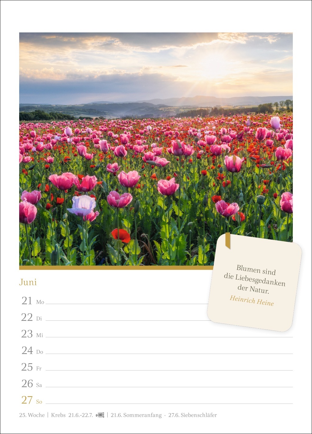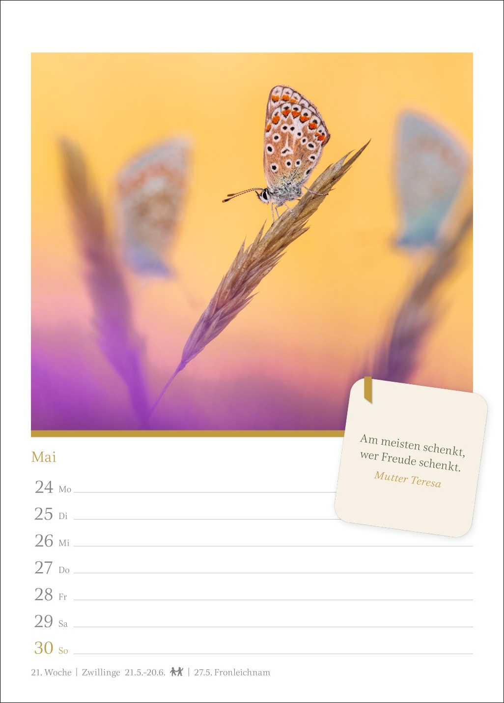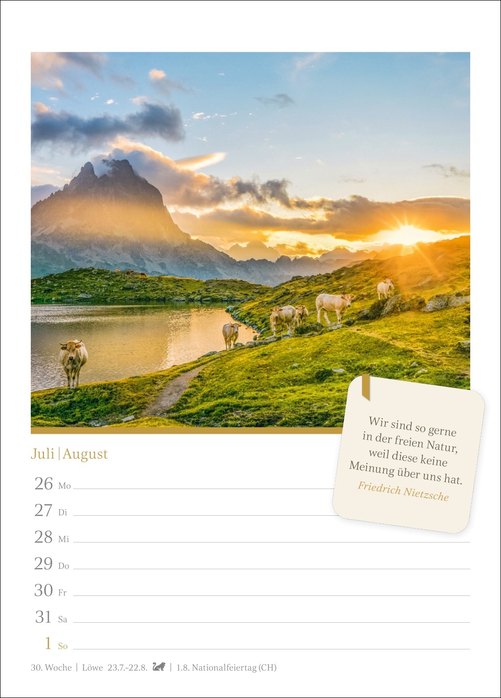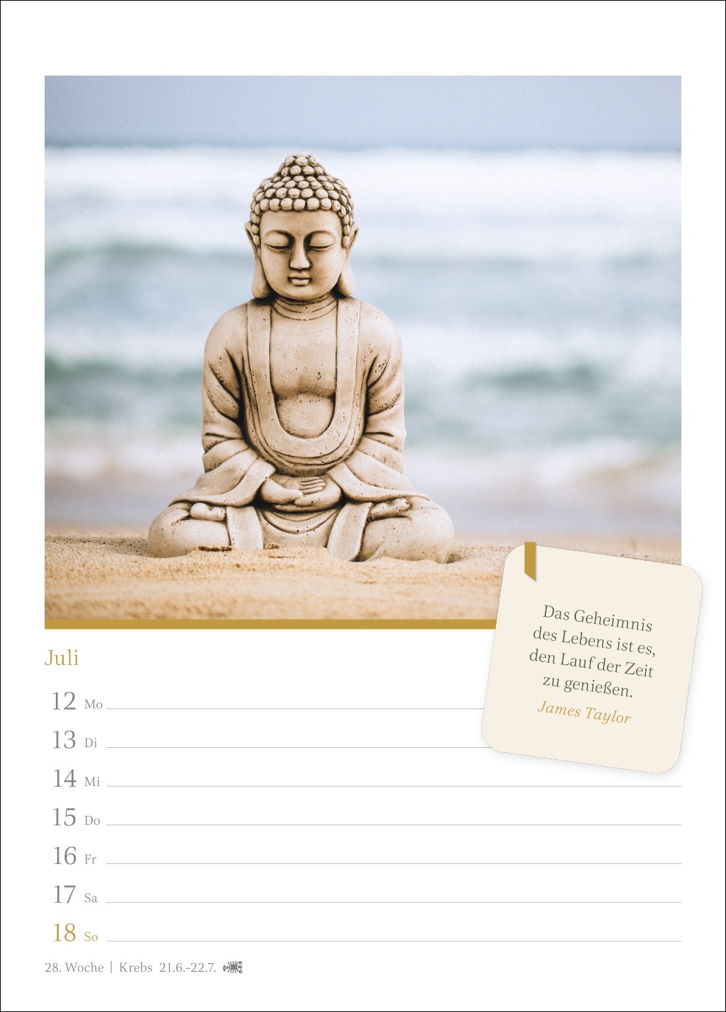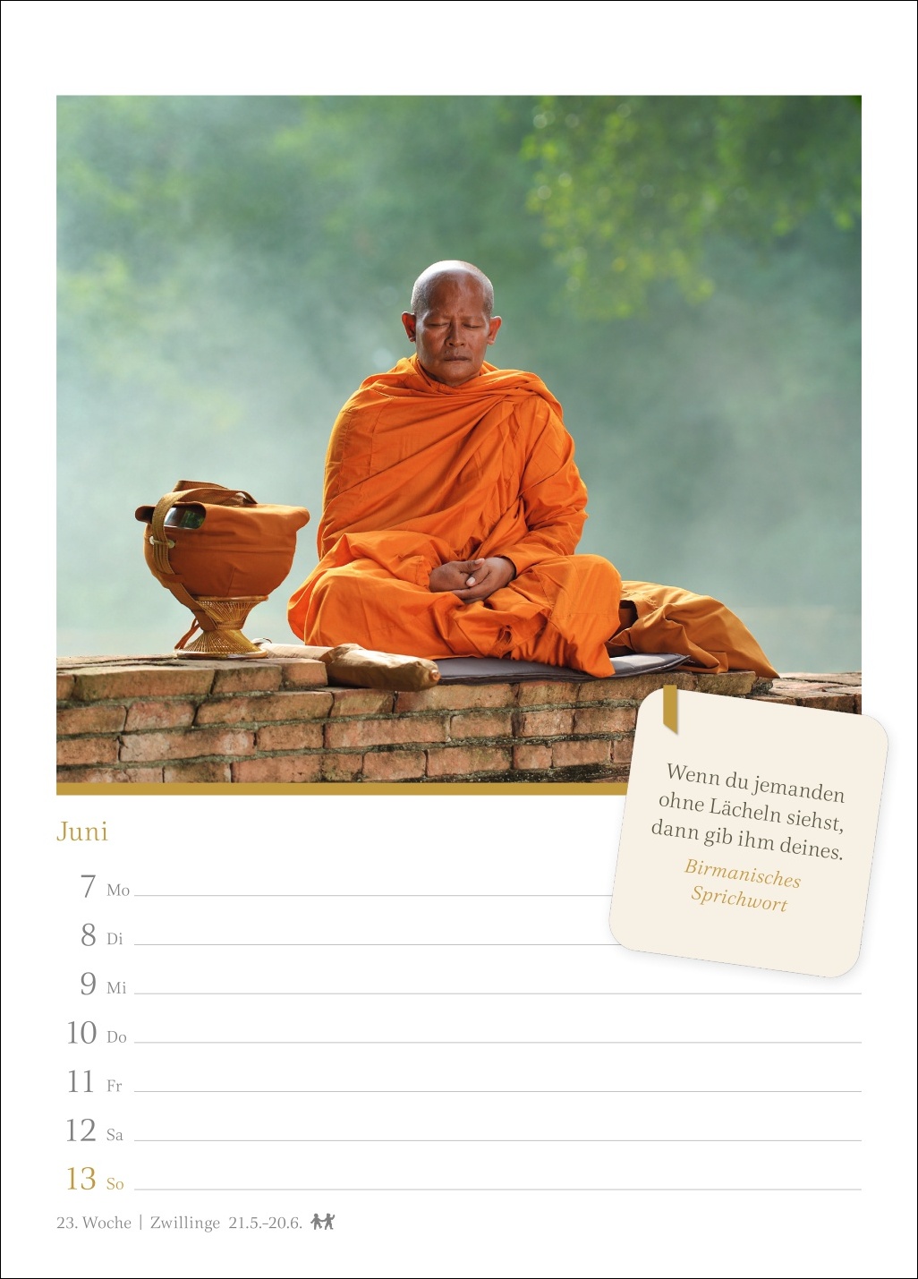 - Ein bisschen Gelassenheit im Alltag und sich trotz vollen Terminkalenders Momente der Ruhe gönnen: Dazu regt dieser Wochenkalender mit schönen Bildern und motivierenden Worten an