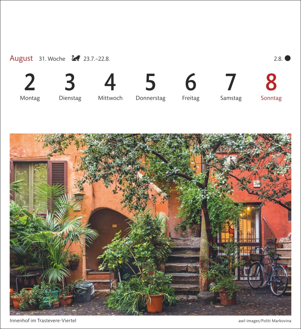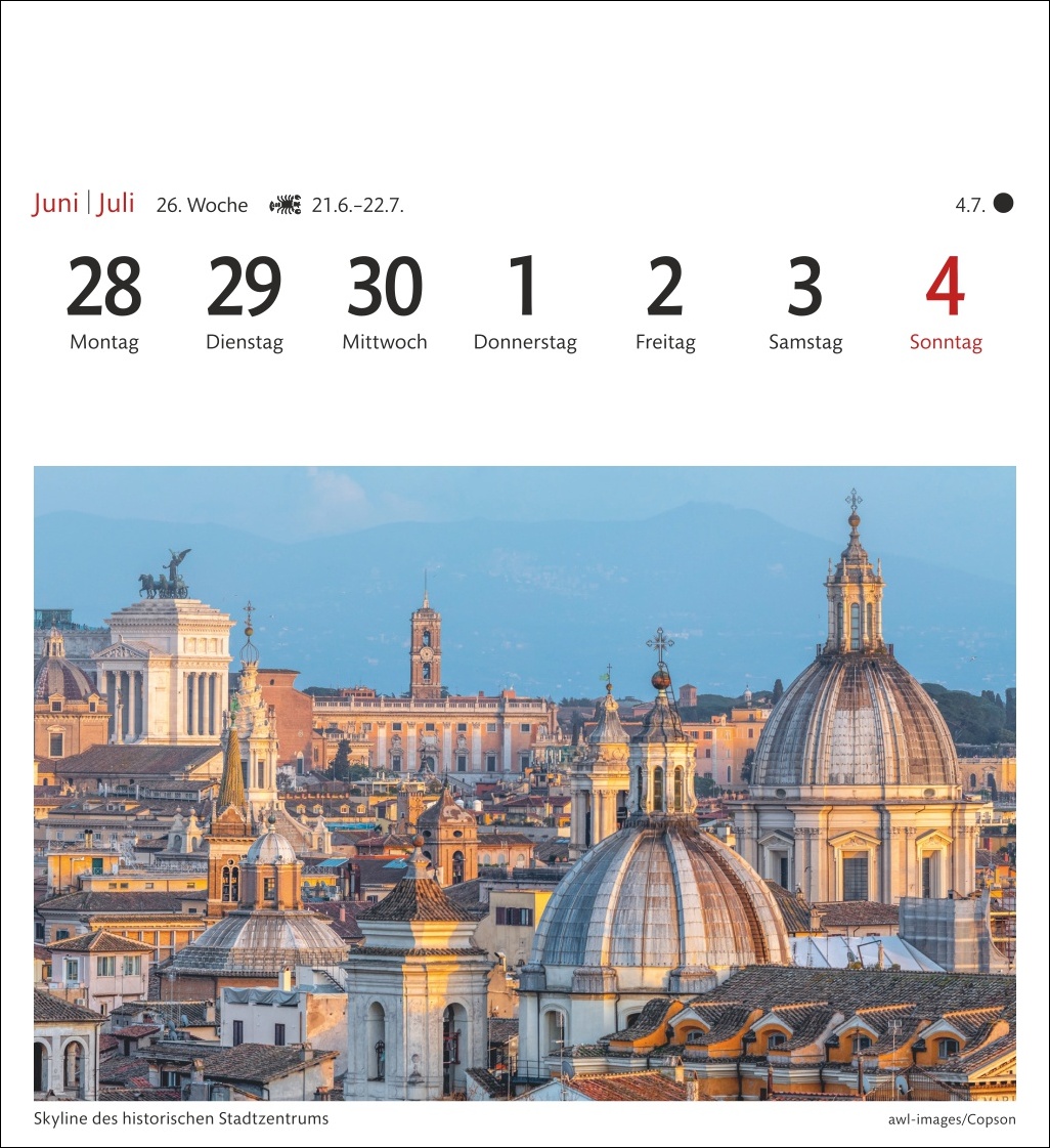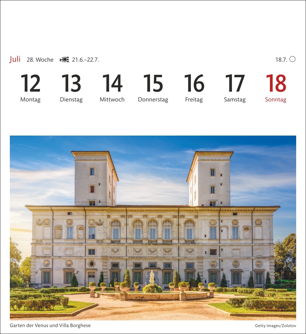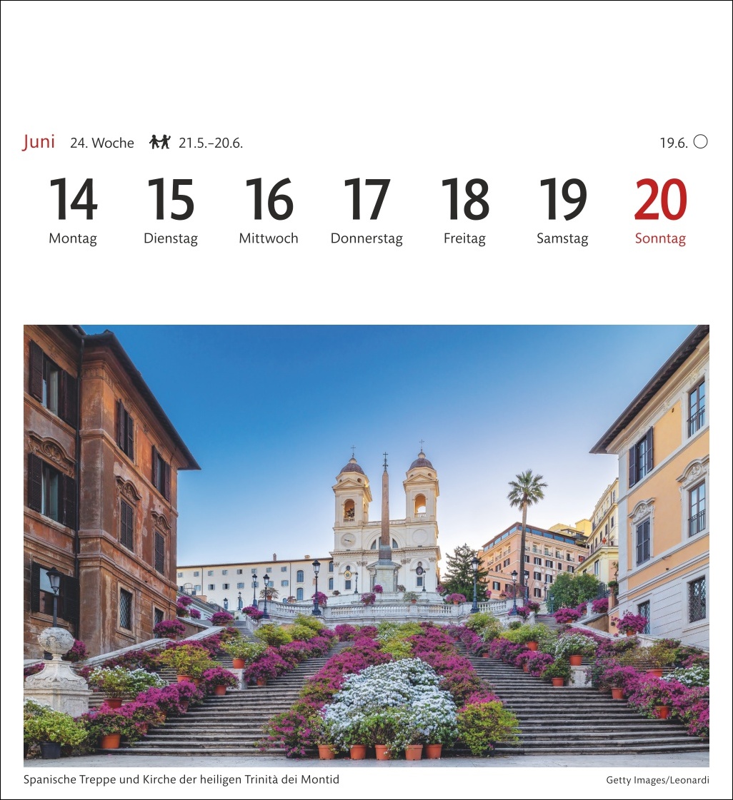 • Woche für Woche ein neues Foto von Rom, das die Reiselust weckt: Postkartenkalender im Format 16 x 17,5 cm