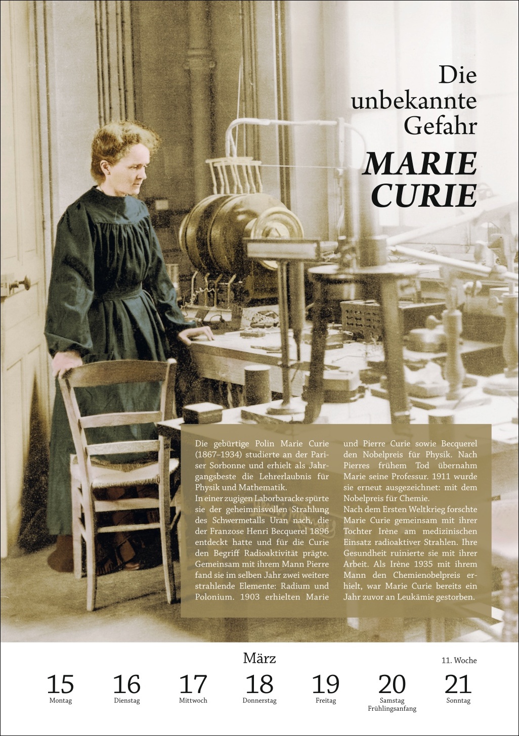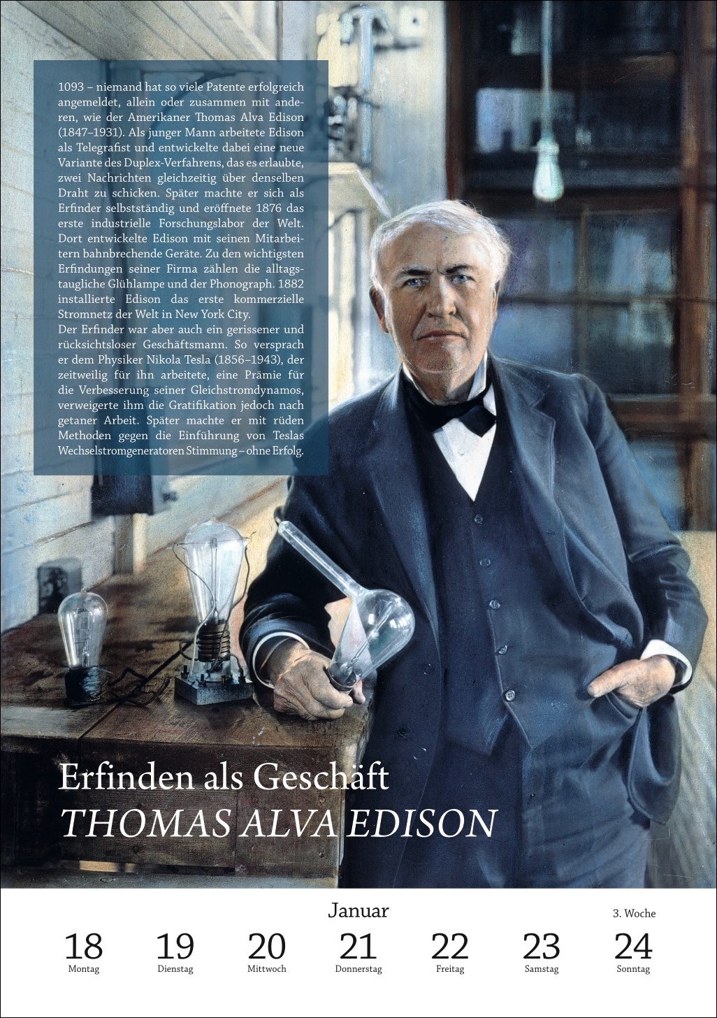 • Von Geistesblitzen, die die Welt veränderten: Dieser Kalender erzählt Woche für Woche, wie Erfinderinnen und Forscher mit ihren Entdeckungen die Menschheitsgeschichte neu schrieben