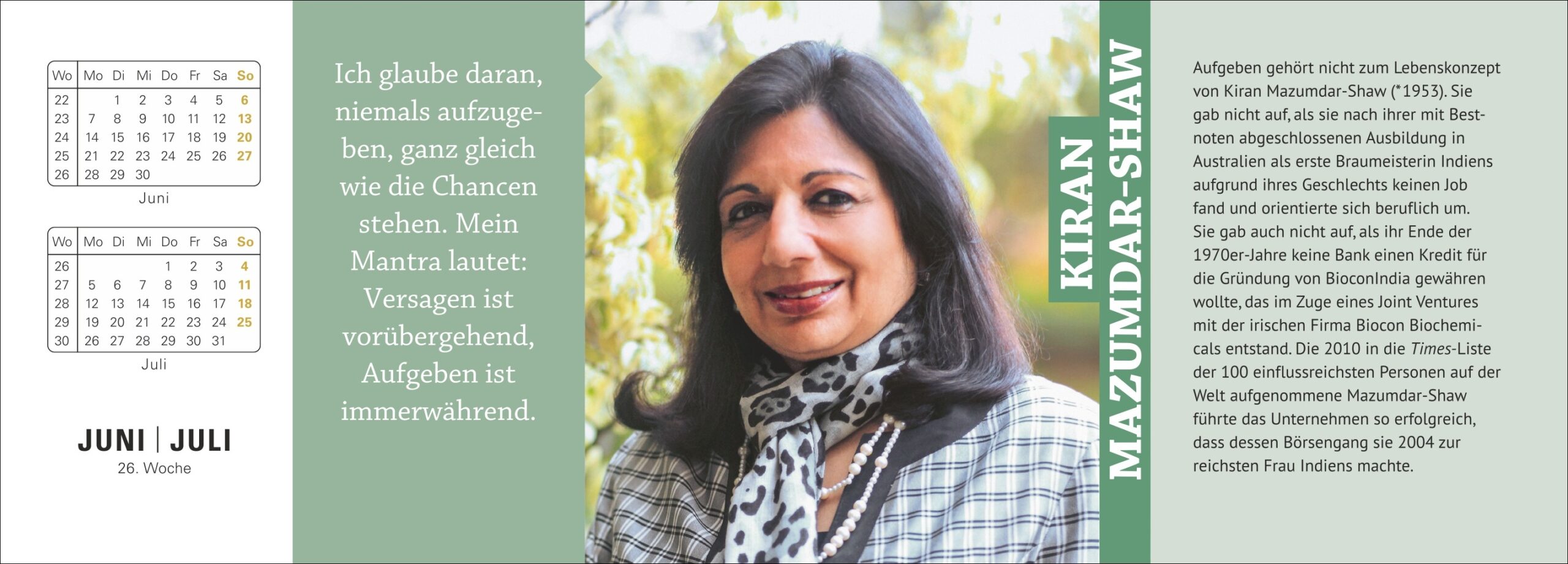 - Der Blickfang für den Schreibtisch: Querkalender mit hochwertigem Hardcover und Farbabbildungen, der Woche für Woche eine inspirierende Frau vorstellt