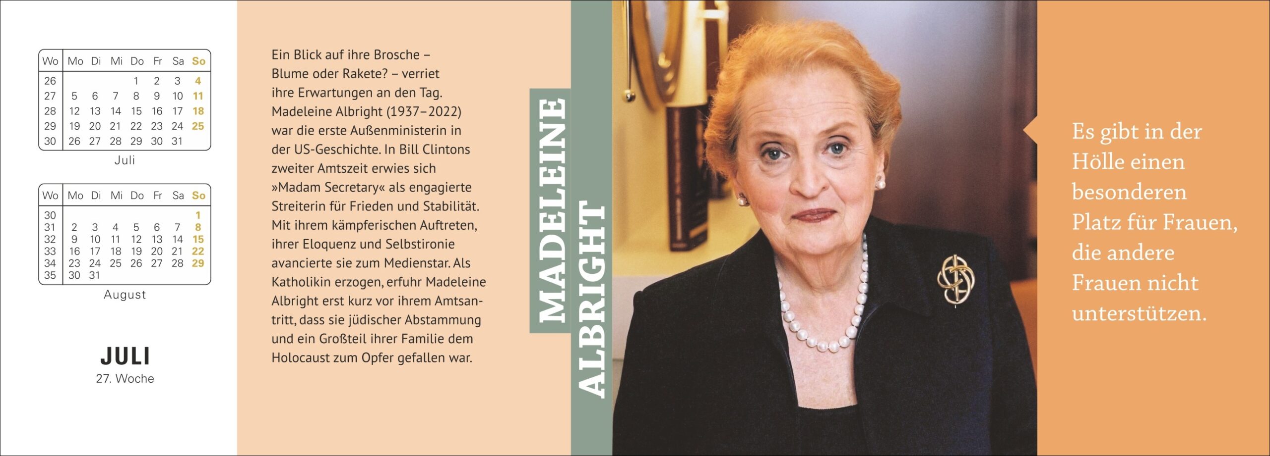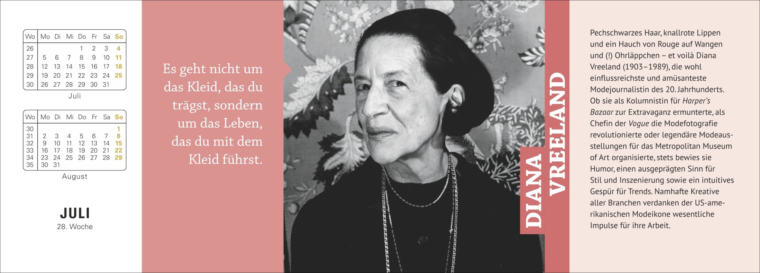 - Woche für Woche Weisheiten und Inspirationen: Tischkalender zum Aufklappen mit Zitaten berühmter Persönlichkeiten von Maria Theresia bis Beyoncè, inkl. Monatsübersicht