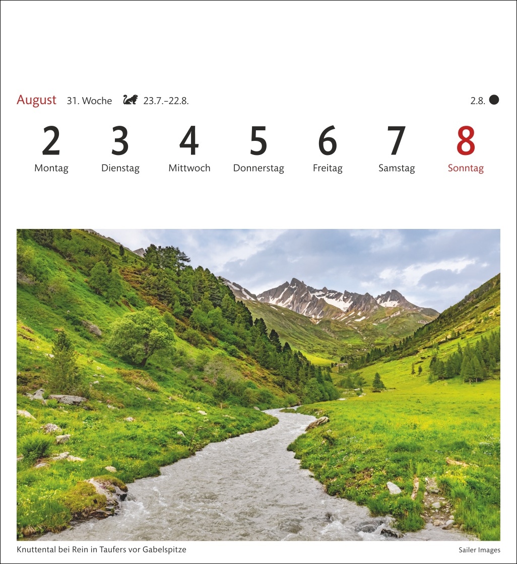 - Romantische Bergpanoramen und verträumte Täler: Südtirol-Wochenkalender im Format 16 x 17,5 cm, der auch daheim für Urlaubsfeeling sorgt