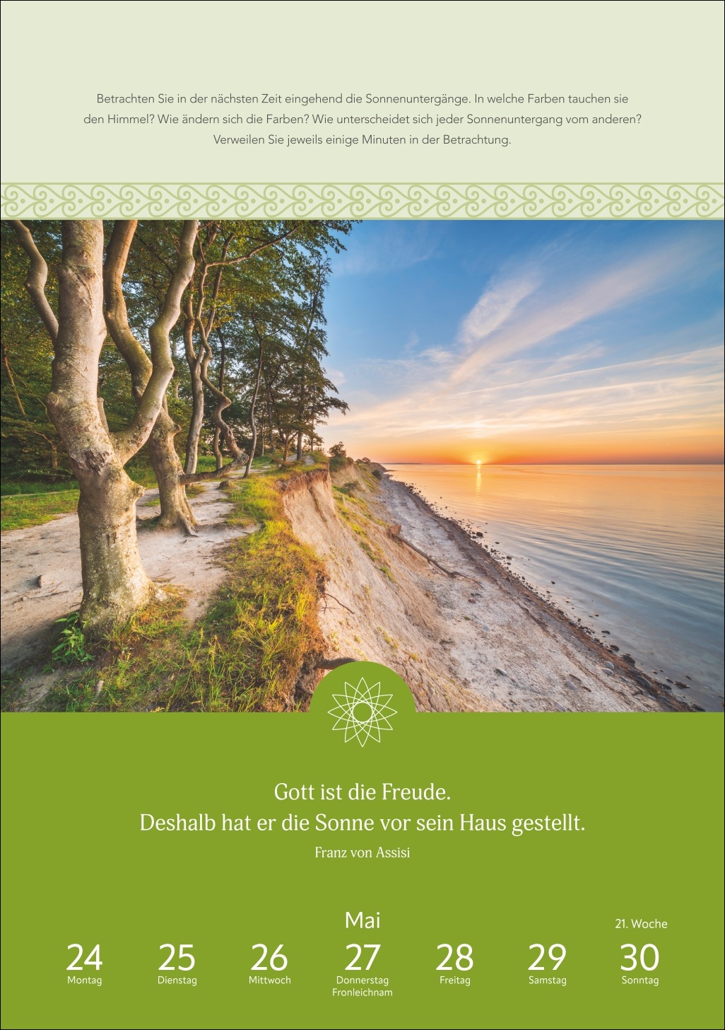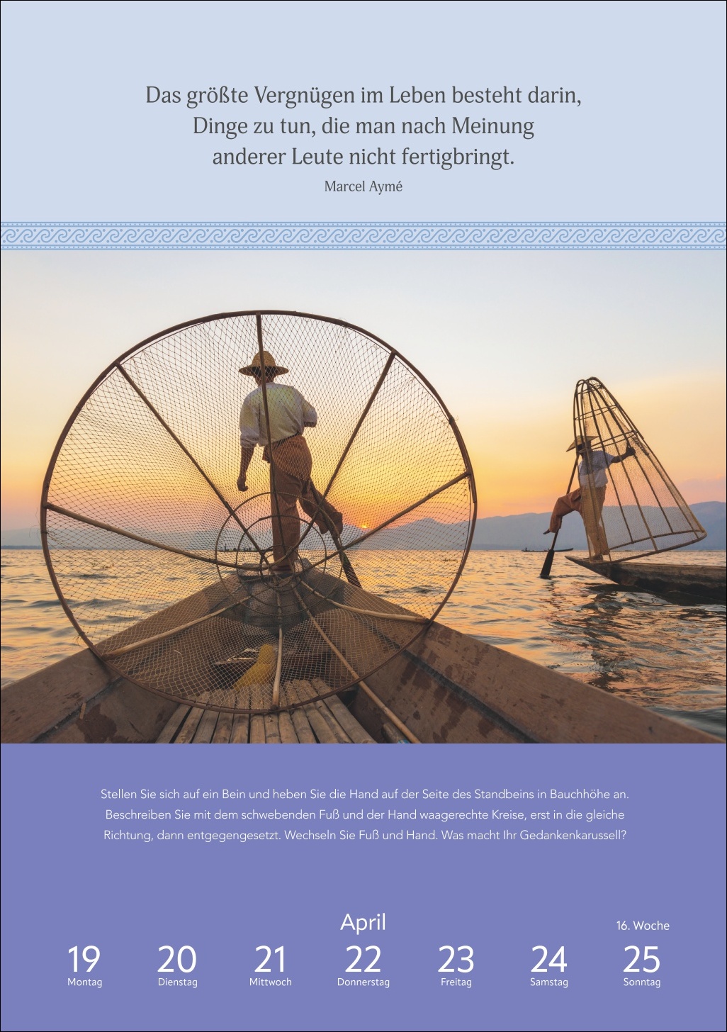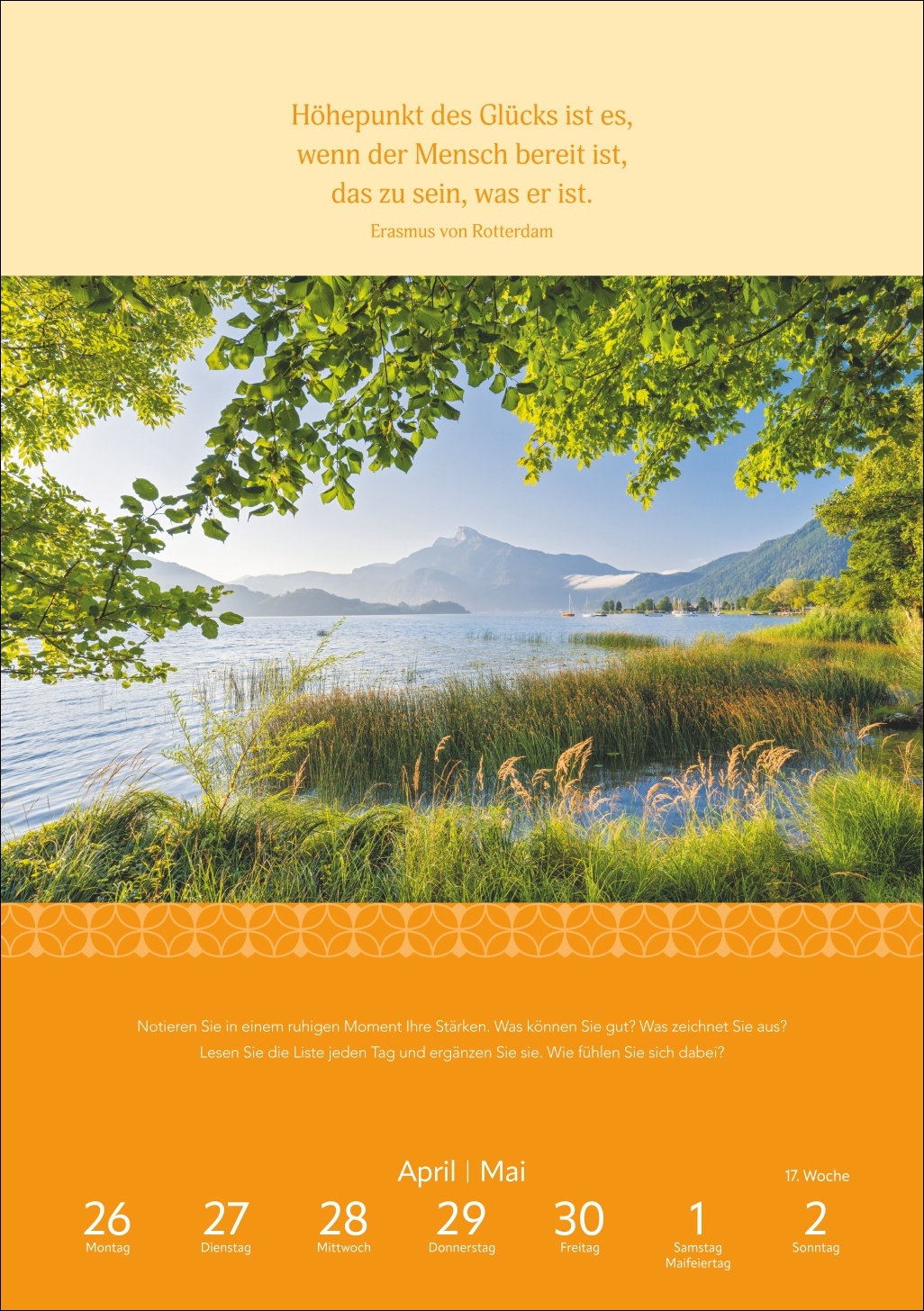 - 53 Anregungen für mehr Gelassenheit: Dieser Foto-Wandkalender vereint stärkende Zitate und Übungen mit schönen Aufnahmen
